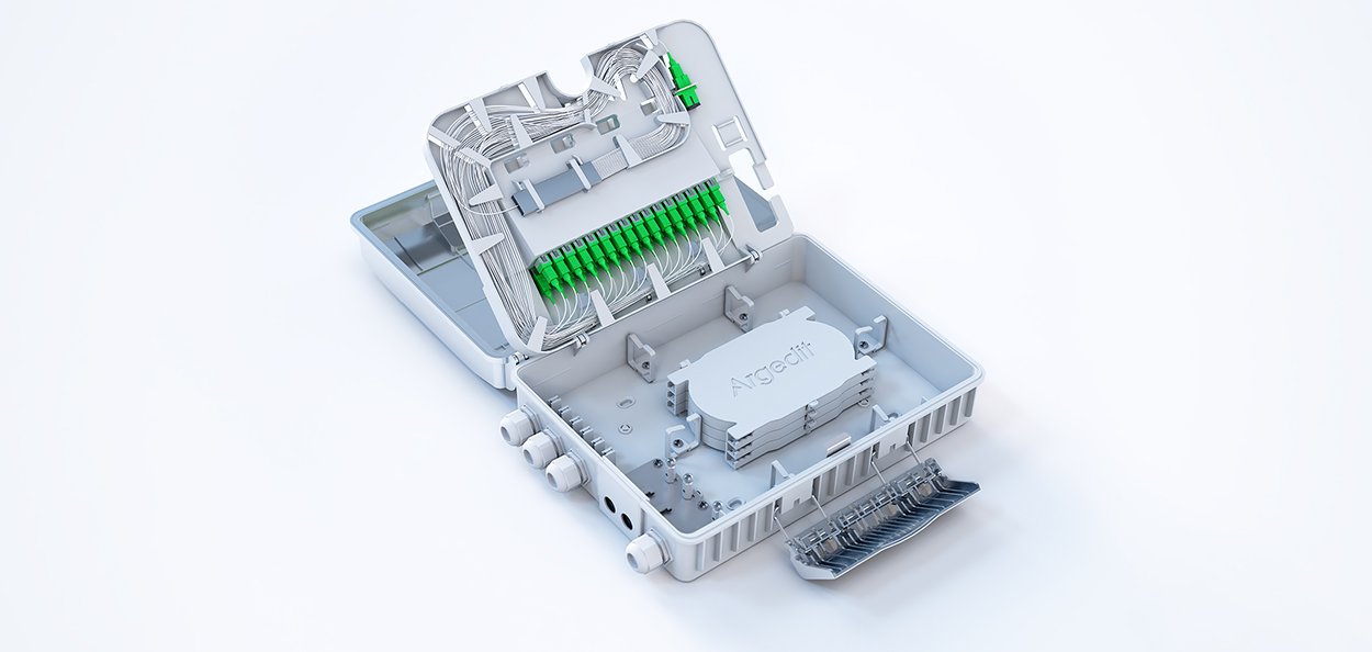 Designed by Argedit, this 32-port outdoor distribution box stands out with its plug-and-play feature, enabling rapid and error-free FTTH deployments. The unit is delivered with a pre-installed 1×32 connectorized splitter, allowing for immediate activation without field delays.
